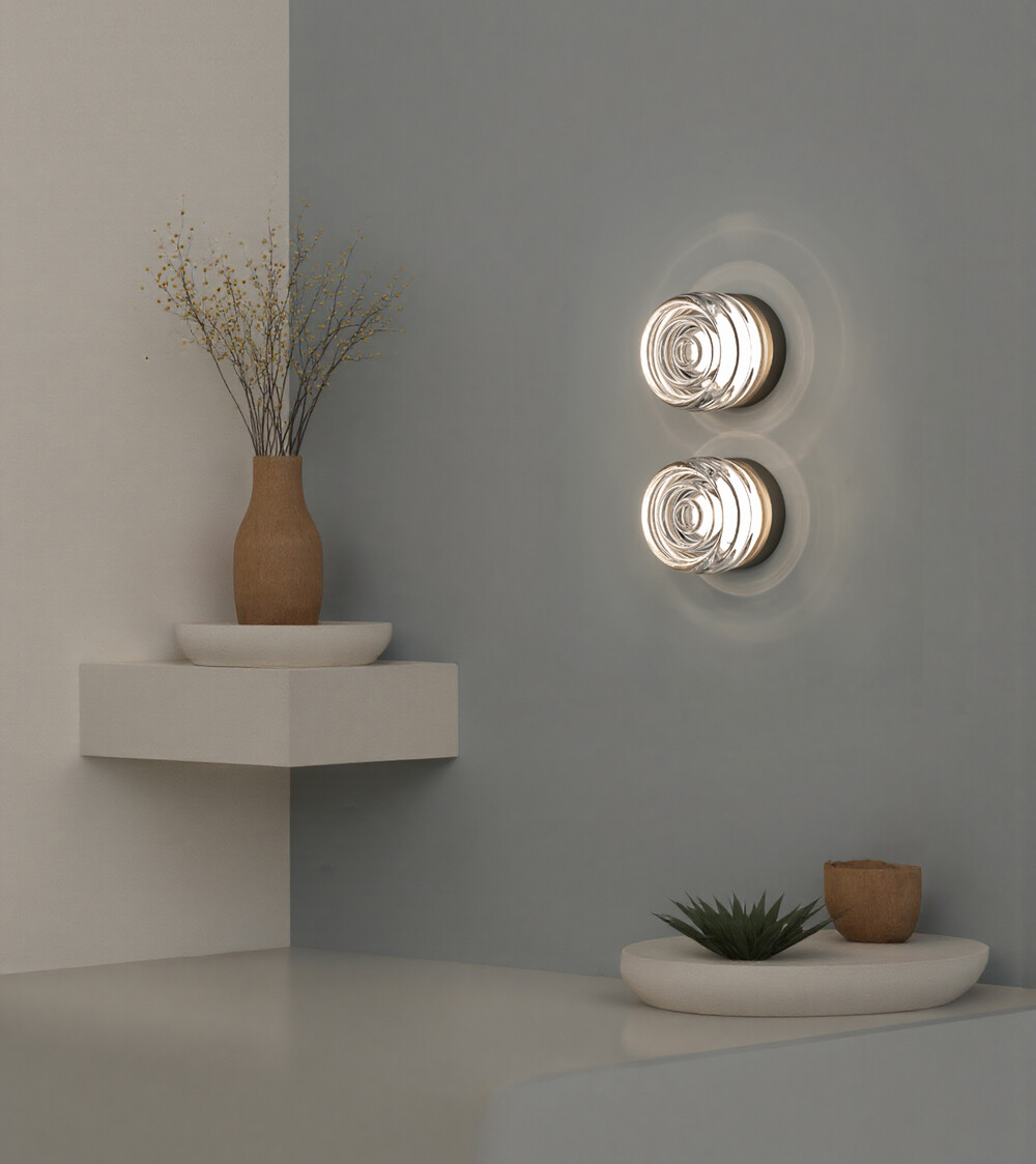 Vermond started with such moonlight as a motif and uses materials like glass and steel to express light