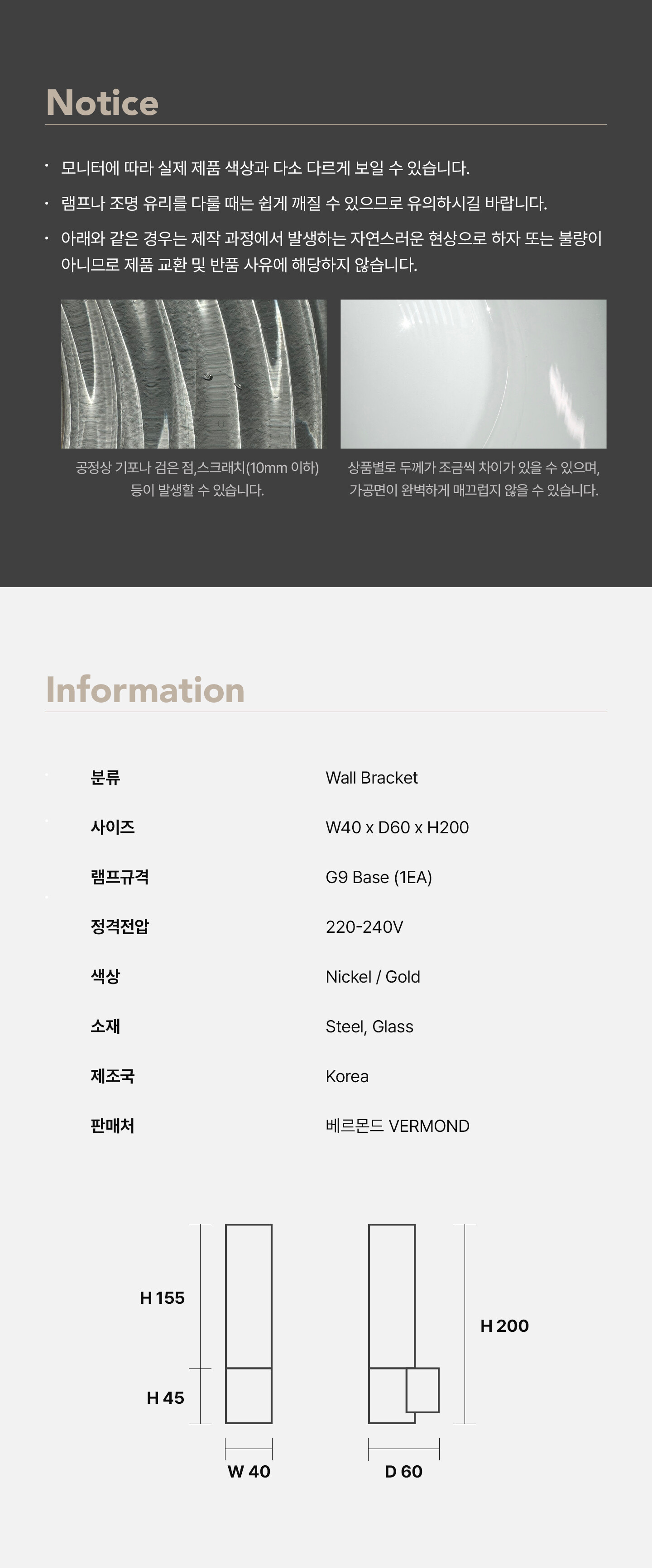 전구가 유리 안쪽으로 보호 되고 있어 욕실 벽등으로도 적합합니다.