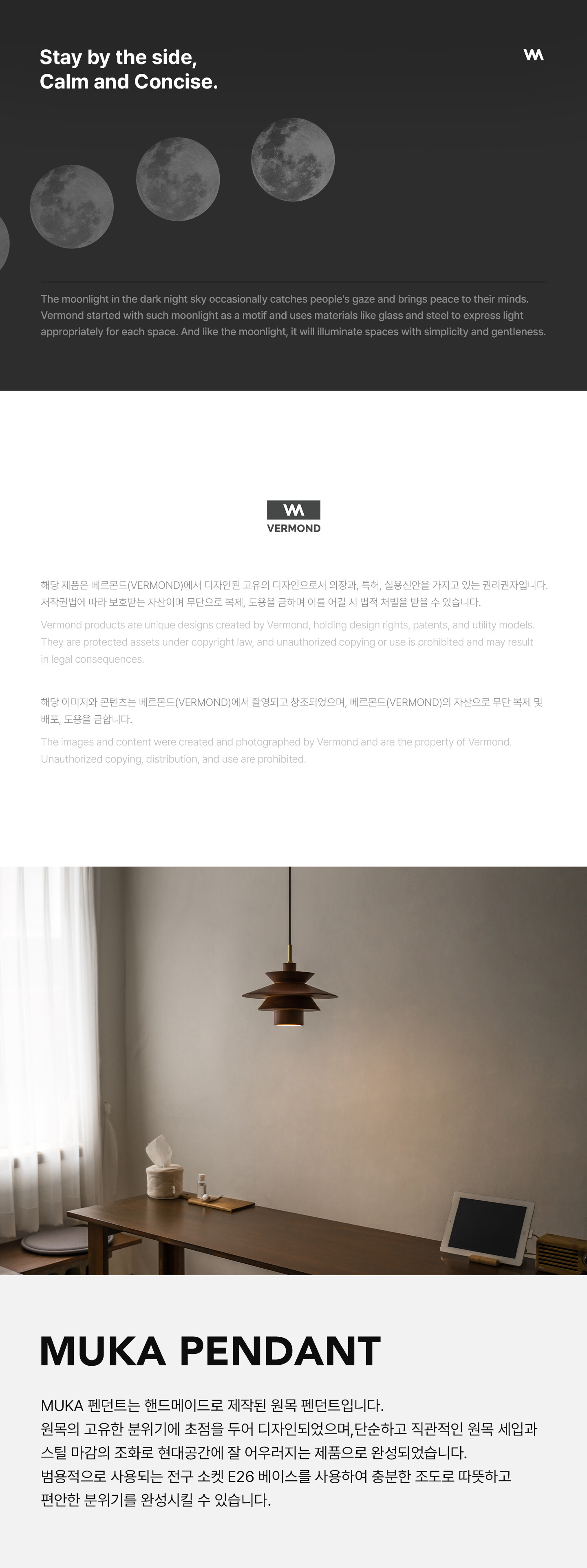 MUKA 팬던트는 핸드메이드로 제작된 원목 팬던트입니다.